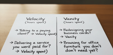 Most entrepreneurs are trapped by Vanity Activities—work that makes them feel productive but doesn’t generate cash. The way out is to shift your focus to Velocity Activities—work that directly and quickly puts money in your pocket.